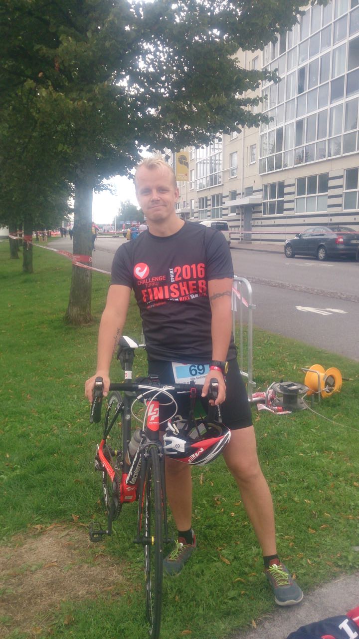 Päässäni oli jo pitkään muhinut ajatus triathloniin osallistumisesta ja helmikuussa lopulta päätin toteuttaa suunnitelman ja ilmoittauduin Challenge Turku puolimatkalle. Pyöräily ja juoksu oli jo entuudestaan lajeina tuttuja, eikä uintikaan täysin ventovieras laji ole joten ajattelin että kyllä tuollaisen puolimatkan aina kiskaisee menemään. Olin talven aikana keskittynyt juoksun treenaamiseen ja juoksu tuntui kulkevankin suhteellisen hyvin. Maaliskuussa kuitenkin alkoivat ongelmat jalkojen kanssa ja kaikki treenaaminen keskeytyi. Itseasiassa penikat äityivät lopulta niin pahaksi että koko kevät jäi käytännössä treenaamatta. Kesän kynnyksellä aloin kevyesti pyörittelemään fillarilla, mutta mielenkiinto pyöräilyäkin kohtaan oli täysin kadoksissa. Niin kesäkin vierähti keskittyen aivan muihin aktiviteetteihin kuin urheiluun. Koko triathlon suunnitelma oli jo siirretty unholaan kunnes noin kaksi viikkoa ennen Turku Challengea ajattelin että kai sen sprintin edes voisi käydä läpi vetämässä rapakuntoisenakin. Vaihto puolimatkalta sprinttiin onnistui ilman ongelmia ja näin oli sitten päätetty testata triathlonia sprintin muodossa.