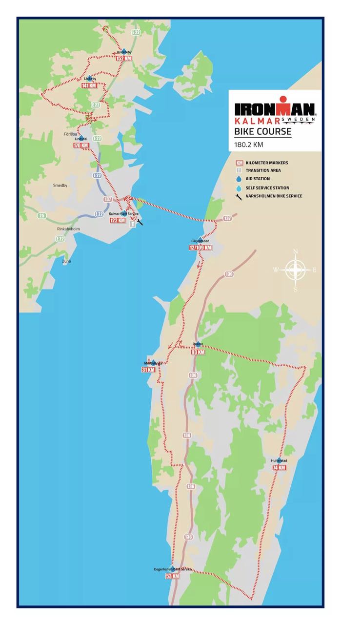 Pyörä kulki heti alusta asti hyvin, hieman nivusissa kangisti kun piti potkia uinnissa normaalia enemmän. En pystynyt käyttämääm uidessa kunnolla keskivartalon tukea kun selkä oli jumittanut automatkan jälkeen. Ohittelin jengiä ja ajattelin aloitinko liian lujaa.. Sillalla tuntui ettei monikaan uskaltanut ajaa ala-asennossa tuulen voimistuessa. Minä päätin olla vaikka henki menisi ja ohittelin sillan ainoan ylä- ja alamäen jälkeen lisää porukkaa. Prätkävalvontaa meni tiheään ohi ja piti olla tarkkana että peesiväli pysyi, alkoi olla ruuhkaa.. Yleisöä oli todella hyvin reitin varrella, eivät turhaan mainostaneet että Kalmarissa on paras kisayleisö! Färjestadenin jälkeen alkoi tuntua hieman vastaista tuuta ja jengi hakeutui selvästi jonoon. Siitä olikin sitten todella vaikea edetä, välit eivät pysyneet tuskin kellään ja jokunen hakeutui jopa törkeästi aivan toisen takarenkaaseen kiinni.