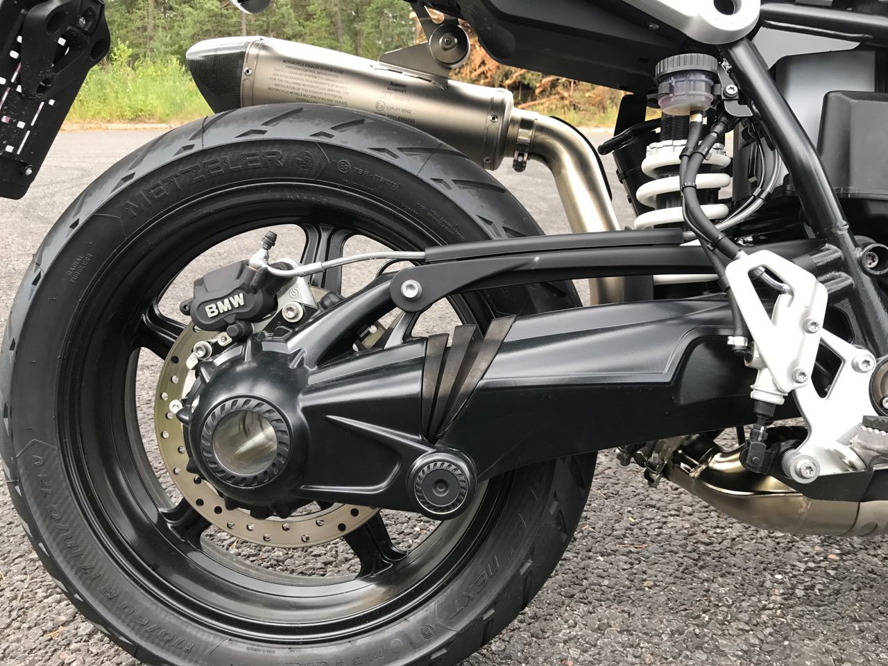 Kardaani istuu harvinaisen hyvin kokonaisuuten ja tekee siitä itseasiassa kevyen oloisen. Toki samalla kardaanin etu on sen huoltovapaus. Isoista matkapyöristä tuttu ratkaisu toimii hyvin myös cafe racerissa.