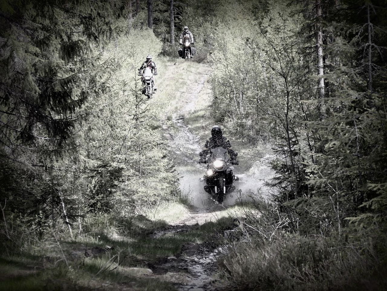 Olemme järjestäneet myös kalastusta ja vaellusta tuntureilla retken oheen kuskeille mutta kokemus on opettanut että motoristit haluavat ajaa joten keskitymme ajamiseen.