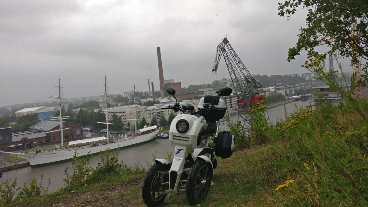 My offspring did a lot of commuting with it and the saddle bags got positive feedback from my daughter. School equipment etc. are easily stored in the bags and everything stays nice and dry. We also faced some heavy rain during the testing and naturally it was not a problem for the bike. Goodyear Ego2 can be used in winter just as well as in summer. Obviously no battery gives quite the same capacity in cold, but this still isn’t just seasonal bike, but a vehicle for all-year use. Three wheels might really come into their element when it gets slippy.