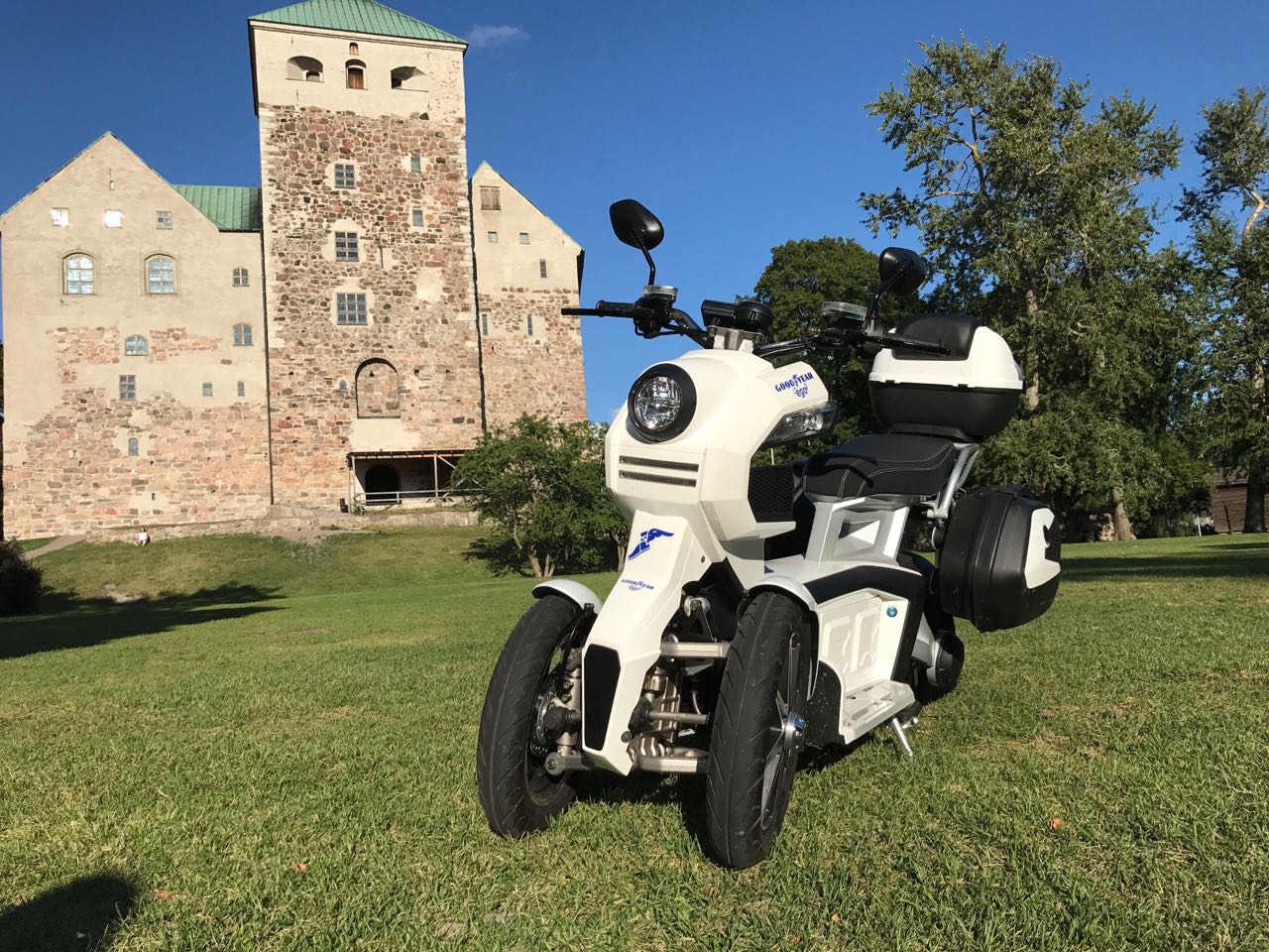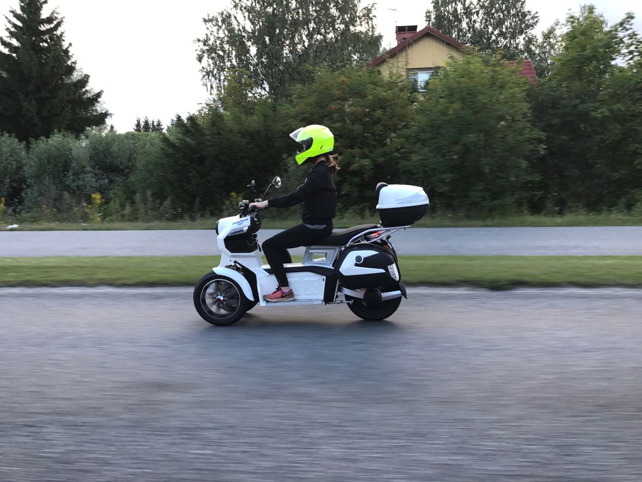 This time I was testing an electric scooter, Goodyear Ego2. Electricity is making its way to every means of transportation. This bike was tested by our whole family. Me, my wife and 16 and 18 year old children. Daughter rides a 50cc scooter and son drives a car and A2 motorcycle. So we got a good range of different test riders.