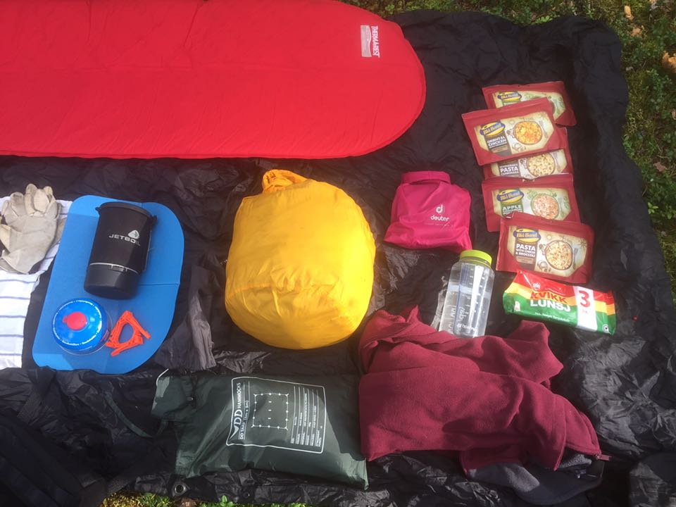 Varusteet retkeilyyn, Kevyt varustelista kahden päivän kesä-/syysretkelle