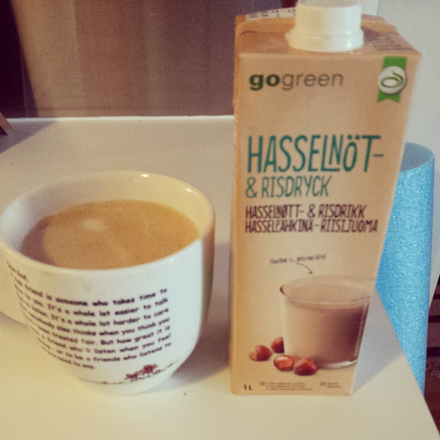 Mutta jottei tämä postaus olisi pelkkää kampanjaa ja tarjousta niin avaan hieman reseptiikkaa mihin itse tuotteita käytin. Koska olen uudehko kahvinlipittäjä niin tottakai laitoin näitä kahviin. Lemppareiksi muodostuivat hasselpähkinä-riisijuoma, vaniljalla maustettu soijamaito sekä mantelimaito. Tuskin kahviin tarvitsette kirjoitettua reseptiä nii kuvat kertokoon enemmän kuin tuhat sanaa!