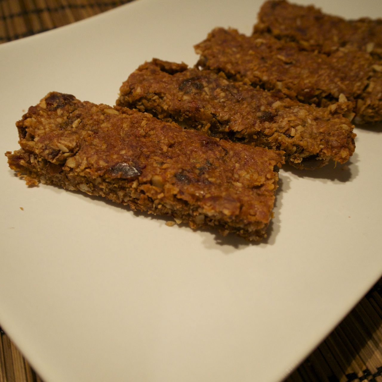 Paista 200 asteessa uunin alaosassa noin 20 minuuttia. Leikkaa paistos lämpimänä, jotta se pysyy kasassa paremmin. Tästä annoksesta leikkasin 14 patukkaa, mutta se on aina makuasia, miten suuria tai pieniä niistä tekee.