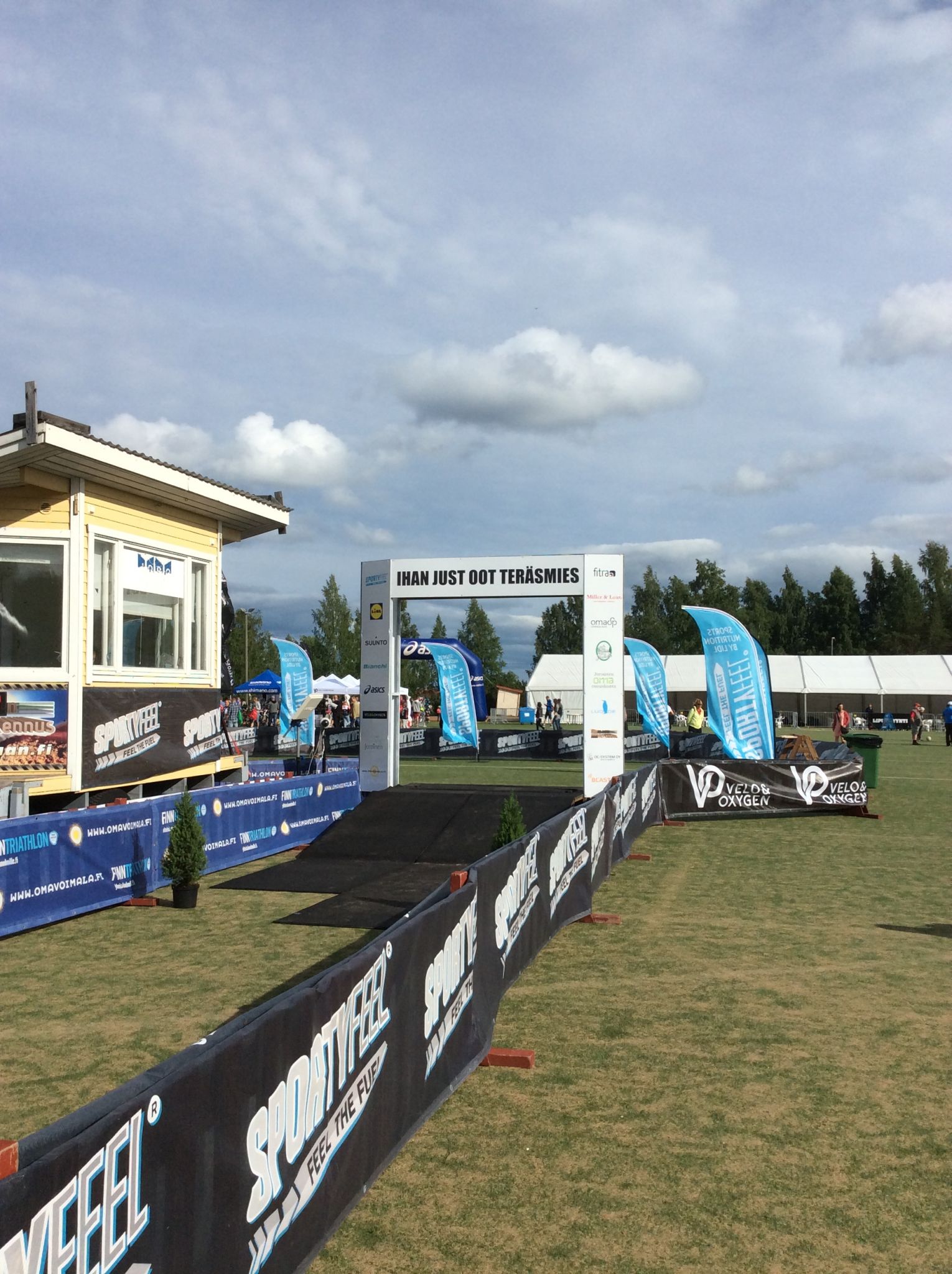 Mutta mennäänpä ensin vähän Joroisten puolimatkaa edeltävään aikaan. Vierumäen perusmatka oli pari viikkoa ennen Joroista, ja sinne minulle osui ns. huono päivä. Jotenkin olo oli tosi jännittynyt jo ennen starttia ja heti tunsi kyllä uinnin ensi vedoista lähtien että tänään ei ole hyvä päivä. Olin valmis heittämään pyyhkeen kehään monta kertaa pyöräilyn aikana, kun oli niin voimaton fiilis, mutta mietin sitten että joutuisin kuitenkin pyöräilemään takaisin vaihtoalueelle, joten mitä hyötyä siitä olisi 😀 eli päätin jatkaa kun mitään erityistä syytä keskeyttääkään ei ollut. Kun tulin pyörältä juoksuvaihtoon, ajattelin että sama kai se nyt on juostakin, kun on tähän asti tultu…juoksu menikin sitten ihan hyvin ns. tyhjillä jaloilla lähelle tavoiteaikaani. Mitä opimme siitä? Never give up 🙂 ellei ole oikeasti jotain syytä keskeyttää, että on sairaana tai muuta, mutta minulla nyt oli vaan ns. huono päivä. Tuosta sain toisaalta erittäin hyvän kokemuksen siitä, että sinnikkyydelläkin pääsee tosi pitkälle, ja huomasin että huonon päivän suoritukseni perusmatkalla jäi vain reilun pari minuuttia tavoitteestani, eli ei huono ollenkaan, tulosten valossa.