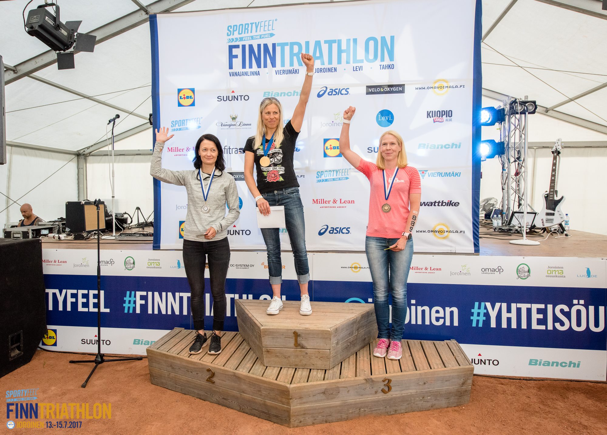 Katsoin vielä myöhemmin virallisia tuloksia tulospalvelusta ja oikein säikähdin kun näin että olin kolmas ikäsarjassani! Ihan sellaista en olisi osannut kuvitella mahdolliseksi 🙂 vaikka ajattelin että kymmenen parhaan sakkiin varmaan tuolla ajalla olisi mahdollisuuksia (vertailun vuoksi, viime vuonna olin 24. ikäsarjassani ajalla 5:41). Suhteellisen ujona ihmisenä jännitti myös palkintojenjakoon meneminen 😀 mutta olihan se mahtava tunne päästä podiumille pokkaamaan palkinto! Palkinto treeneistä, ja omasta sinnikkyydestä, kyllä sille kolmannelle sijalle olisi taatusti ollut ottajia minun jälkeeni, jos en olisi sinnitellyt juoksussa, jotta se oma aikatavoitteeni täyttyy 🙂