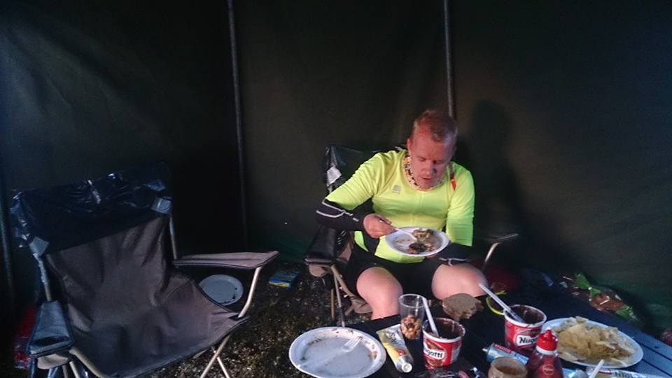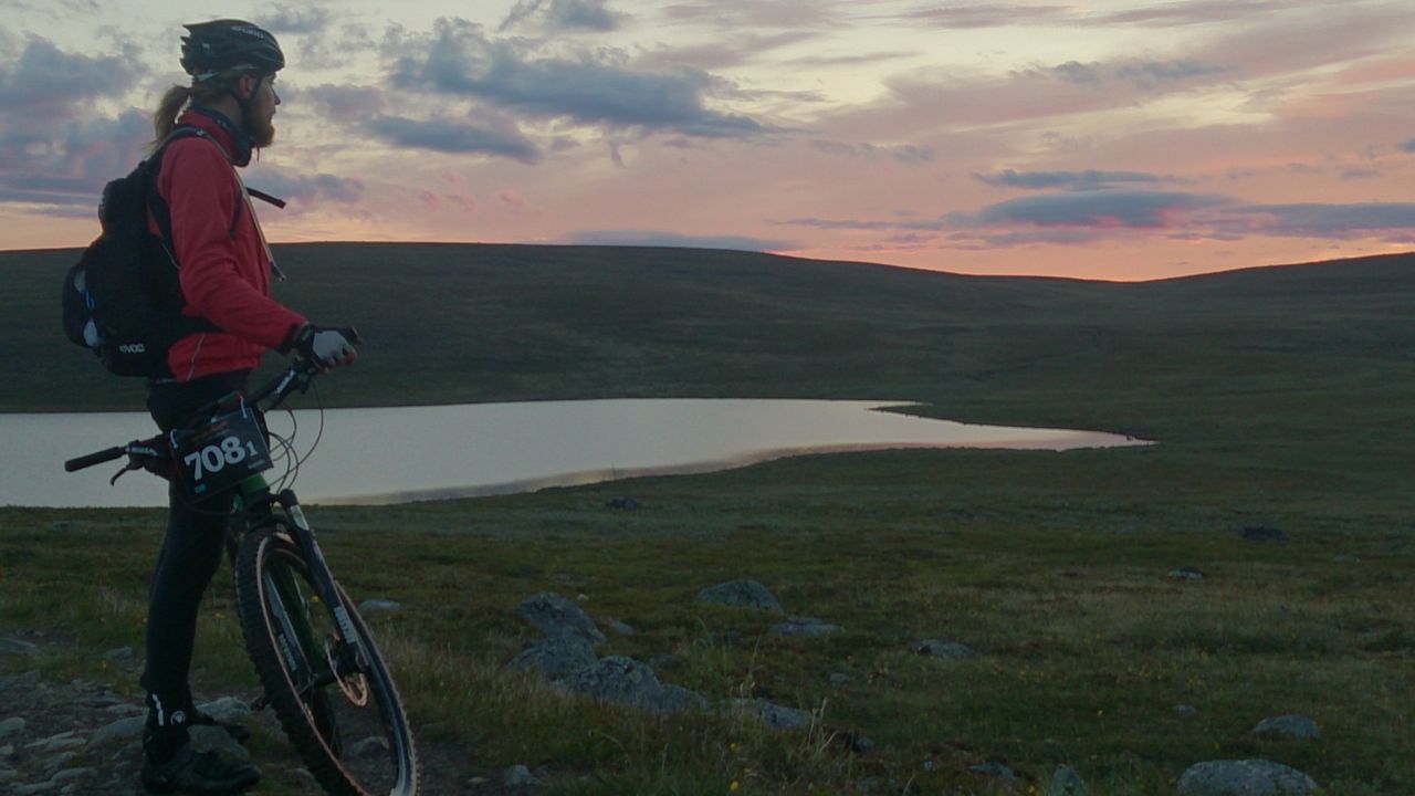 Toinen etappi alkoi luonnollisesti asfaltti pitkin kun kerran kaupungista lähdimme. Asfalttia jatkui vain lyhyen pätkää ja siirryimme hiekkateille joissa saatiin muutama kunnon nousu polkea niin ylös kuin alaskin. Tällä osuudella oli myös paljon paikallisia ihmisiä teidenvarsilla seuraamassa kisaa ja hurraamassa kannatushuutoja. Tieosuuksien jälkeen oli aika siirtyä tuntureille. Täällä alkoi nousut olemaan melkoisia mutta niin oli myös laskutkin. Maisemat tällä osuudella oli kertakaikkisen hulppeat ja olimme liikkeellä keskiyöllä joten yöttömän yön auringonlasku ja –nousu osuivat täällä kohdallemme. Tämä etappi oli teknisesti helpohko. Polut olivat hyvin ajettavissa. Laskut olivat suhteellisen kivikkoisia ja naureskelimme kehittyvämme tässä vielä melkoisiksi enskakuskeiksi. Etapin lähestyessä loppuaan muuttui reitti erittäin märäksi ja hyttysten määrä oli helvetillinen. Garminiemme ilmoittaessa saavuttaneemme maalin ei väliaikapistettä kuitenkaan näkynyt missään. Erään mökin tosin löysimme, mutta se näytti täysin elottomalta eikä kukaan avannut ovea kovasta kolkuttelusta huolimatta (onnesta ei tullut kukaan haulikko kädessä avaamaan). Myöskään puhelimissa ei ollut kenttää joten soittokaan väliaikapisteelle ei onnistunut. Aikamme ihmeteltyämme mitä tehdä päätimme jatkaa matkaa silläkin uhalla että väliaikapiste jäisi käymättä ja diskaaminen olisi mahdollista. Ajettuamme muutaman kilometrin näimme edessämme teltan ja tajusimme väliaikapisteen sijaitsevan siellä. Väliaikapisteellä jälleen pyörämme pestiin ja öljyttiin samalla kun itse tankkasimme energiavarastojamme.