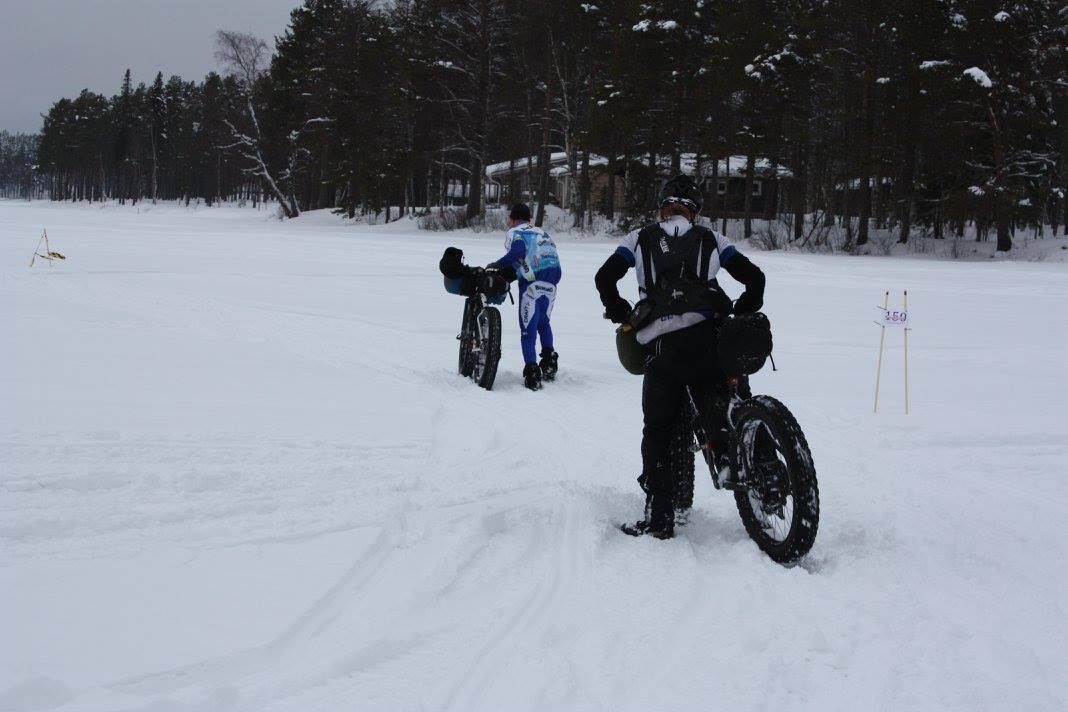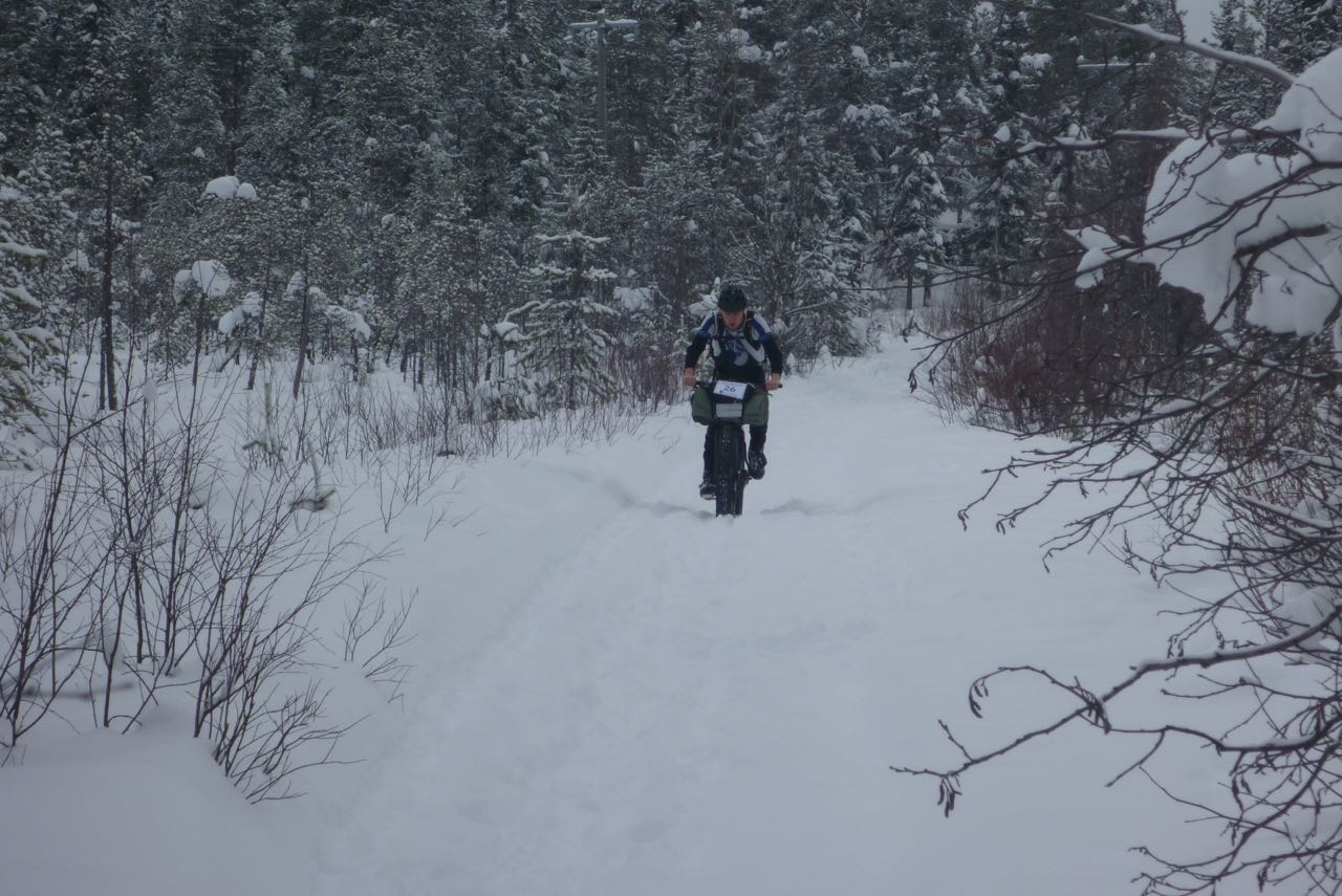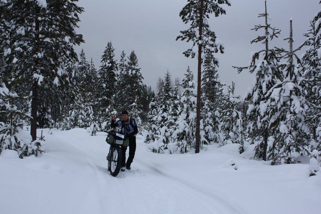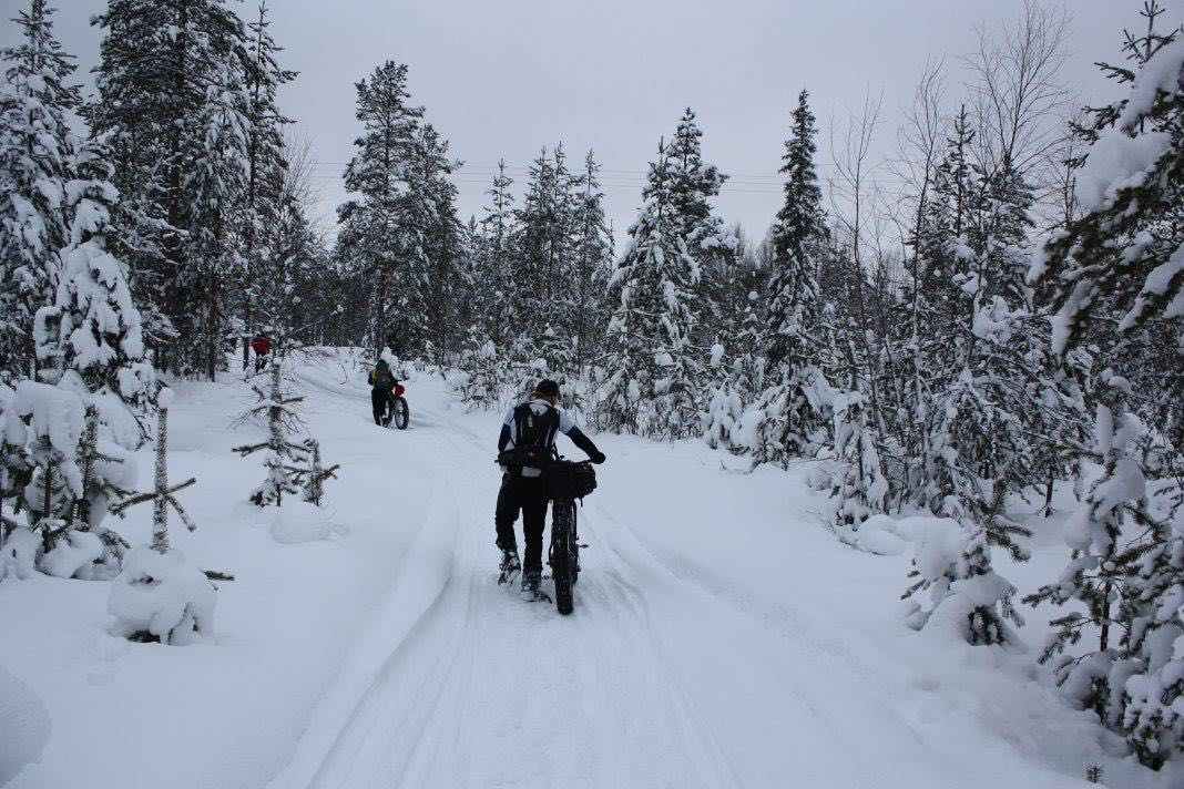 Jäältä päästyämme  alkoikin pyörän työntäminen oikeastaan heti. Ensimmäinen metsäpätkä meni vielä helposti välillä ajaen ja välillä tunkaten. Tämän jälkeen riittikin sitten vaikeampaa ajamista Sinettäjärvellä. Kaatuilin, enkä päässyt ajamisen rytmiin millään. Kärkiporukka katosi kauas horisonttiin ja itse taistelin pyörän hallinnan kanssa. Järven vaikeuksien jälkeen oli edessä jälleen tuttua menoa, eli vaihtelevaa ajoa ja tunkkausta.  Onnekseni sain seurakseni Lindströmin Petrin , joka osoittautuikin todella kovaksi ajajaksi sijoittuen 150km sarjan toiseksi! Vetoapuna ja seurana kaveri oli paras mahdollinen (kiitos siis kaikesta ja onnea mahtavasta ajosta!),  joten Rovaniemi300 sujui kuitenkin suhteellisen leppoisasti.