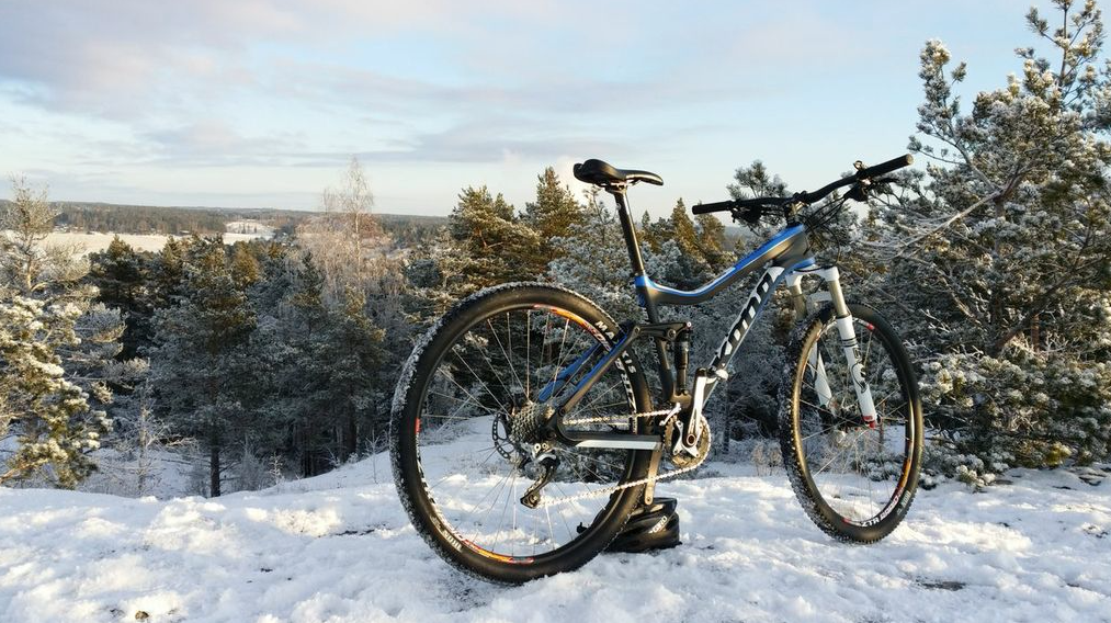 Sitten itse asiaan eli ajotuntumaan. Ensimmäisenä testasin maantieajoa runsaan sadan kilometrin verran. Testausta hieman haittasi se että oli kirpeä pakkanen ja piti pukea niin paljon päälle että vaatteet kangisti. Siitä huolimatta ajo tuntui varsin kevyeltä ja miellyttävältä kunhan satulan oli ensin saanut muutaman säätökerran jälkeen sopivalle korkeudelle. Varsinaista ihmetystä aiheutti renkaiden käsittämättömän hyvä pito. Ennen lähtöä hieman pelotti kuinka on käymän kun kesärenkailla lähtee talven liukkaille mutta koko lenkin aikana rengas ei kertaakaan lipsahtanut missään. Ajotuntuma yleisesti oli erittäin vakaa ja tuntui siltä että annettu voima meni perille eikä jäänyt hillumaan pyörän joustovaraan. Tien epätasaisuuksia ei huomannut juuri ollenkaan mikä entisestään lisäsi ajomukavuutta. Myös keulan etäsäätö (kolme eri porrasta, CTD) oli mukava lisä vaikkakin sen suurin hyöty tulee sitten maastopolkujen välisillä maantiesiirtymillä.