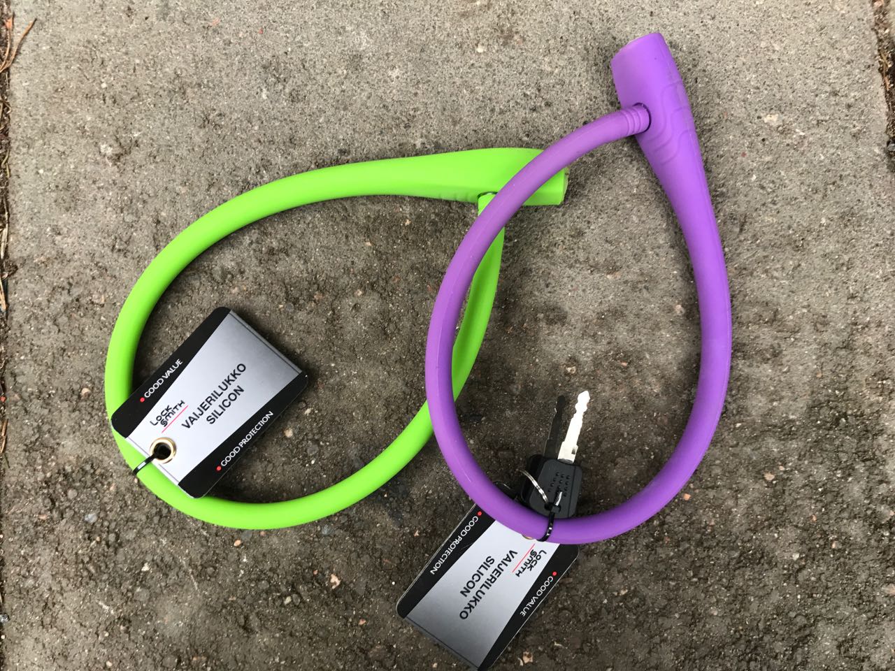 Ja jokaisen kukkarolle löytyy varmasti jokin lukko, vaihtoehtoina löytyy myös hintaluokkaan 10-20,- lukko jolla saa pyörän vaikka sitten telineeseen kiinni. Hyvä ja halpa lisäturva varsinaisen lukon lisäksi.