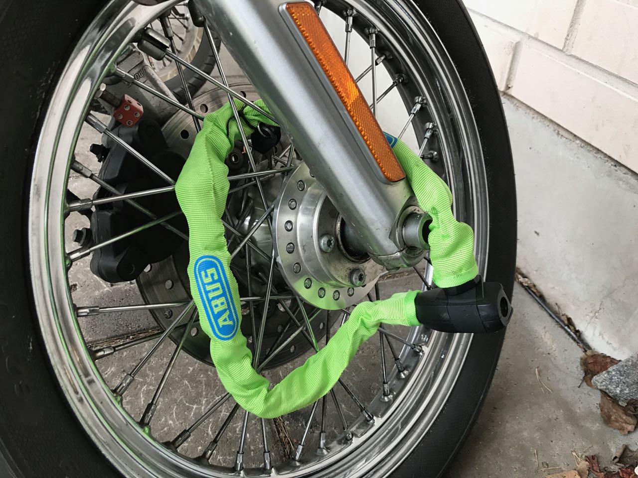Tuo moottoripyörän lukitus ko. tavalla sopii vain hyvämuistisille, sillä jos lukko unohtuu kiinni, niin kaatuminen tai jonkun rikkoutuminen on lähellä. Arvatkaapa mistä tiedän…