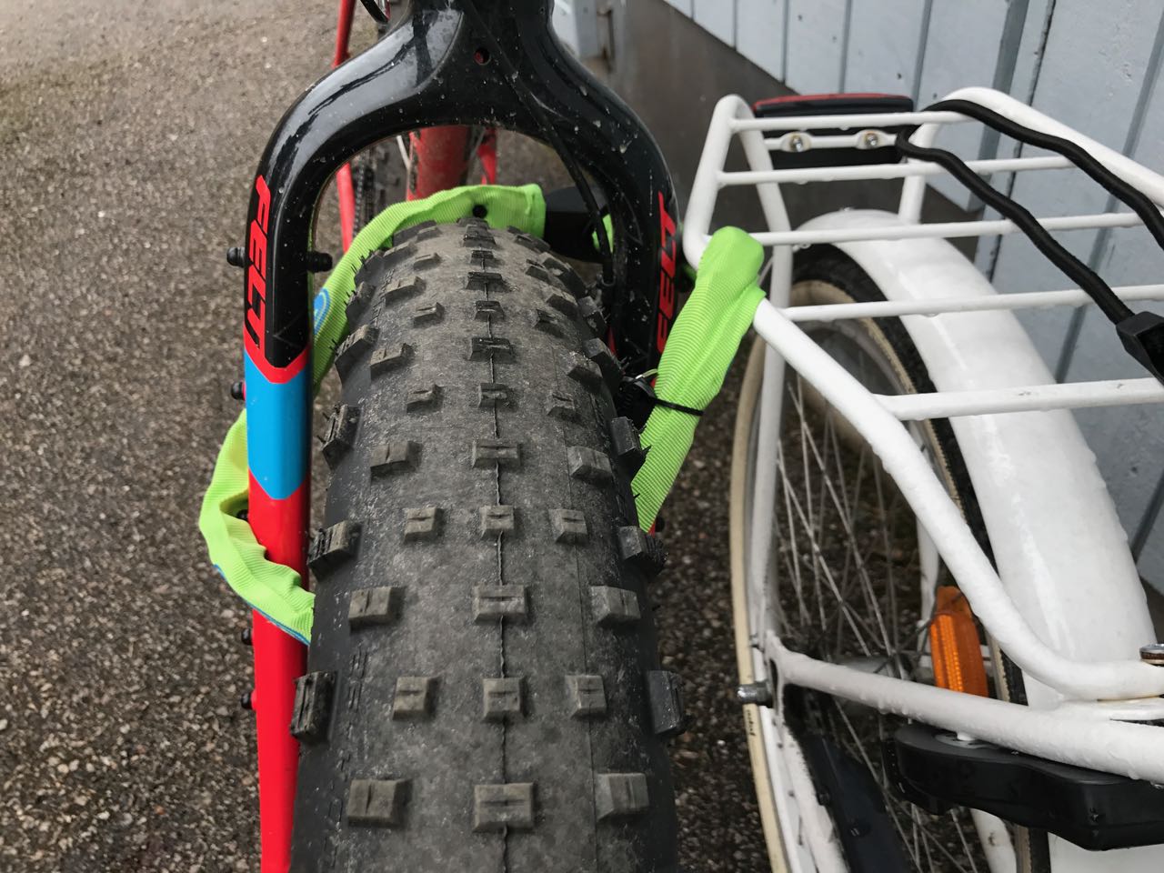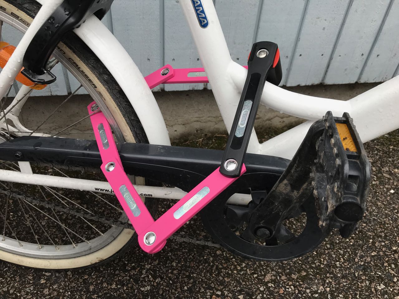 Ja yhtälailla sama homma isommassakin pyörässä. Ketjulukko estää työntämisen pois ja näin vaikkapa pidemmässä säilytyksessäkin lisää turvallisuutta.