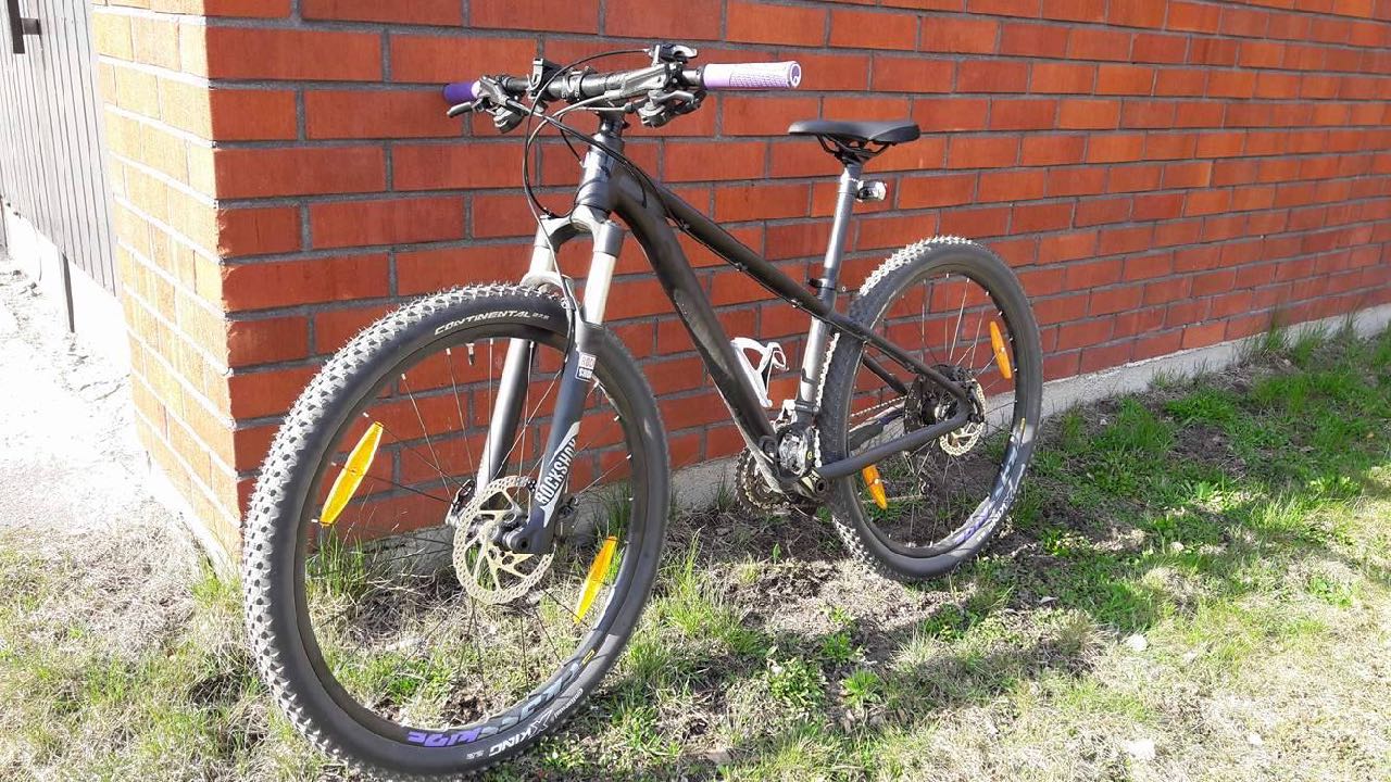 Sopivan pyörämallin selvittely alkoi jo lokakuussa, netistä katsoin lähinnä alimman hintaluokan alumiinirunkoisia pyöriä ja tarjontaa värin perusteella. Onneksi uskalsin kysyä tuttavaltani jo löytämääni malliin hieman mielipidettä, hän huomautti heti osasarjasta ja pyörän painosta. Jäykkäperäiseen olin jo päätynyt monen tutun vinkkauksella, sillä voisi tarvittaessa ajaa hyvin kisojakin. Fatbiken tuleminen mallistoihin sekoitti hieman pakkaa ja lopulta päätös oli vain yksinkertaisesti tehtävä. Harrastajatuttavani johon luotin, laittoi linkin Canyonin malliin joka oli varustettu XT-osasarjalla ja myös painoltaan lähes 2 kg kevyempi kuin aiemmin katsomani toisen merkkinen pyörä. Rengaskoon piti pituuteni vuoksi olla 27,5”. Canyonin WMN -mallin uskoin olevan geometrialtaan minulle hyvin sopiva.