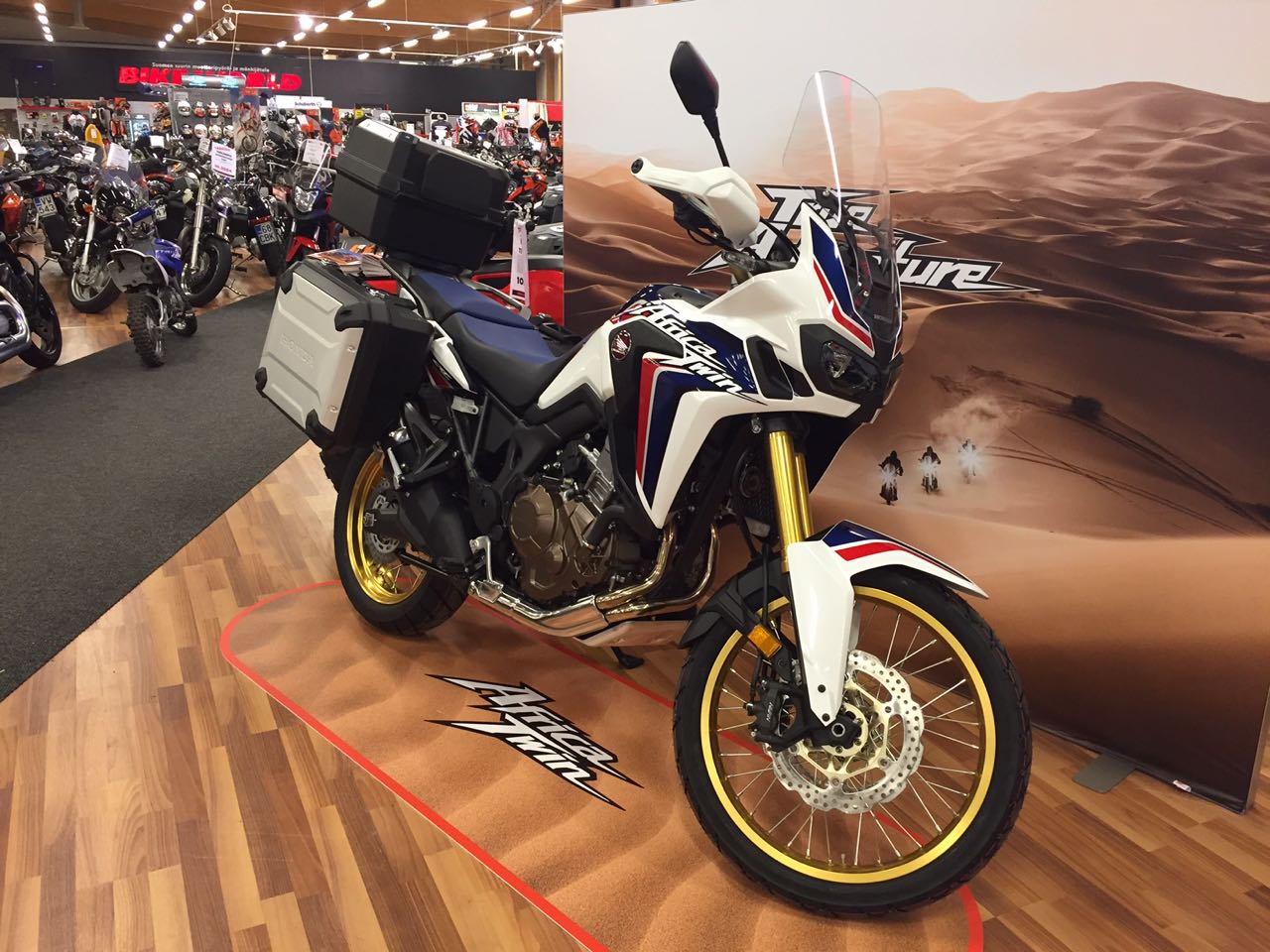 Kävimme katsomassa tuoreeltaan Turun Bikeworldissä uuden Honda Africa Twin enskan. Jokainen Long Way Round elokuvan katsonut on miettinyt millaista olisi ajaa pitkä siivu pyörän kanssa välittämättä siitä millaista pinnoitetta matkan varrella on. Lisäksi olisi mahdollisuus lastata varusteita reilusti mukaan. Kuulostaa hyvältä ja sitähän sellainen olisi. Monella valmistajalla on tälläiselle reissulle välineensä, nyt Honda tarjoaa tähän omansa joka on jatkumo käsitteeksi muodostuneelle Honda Africa Twin pyörälle.